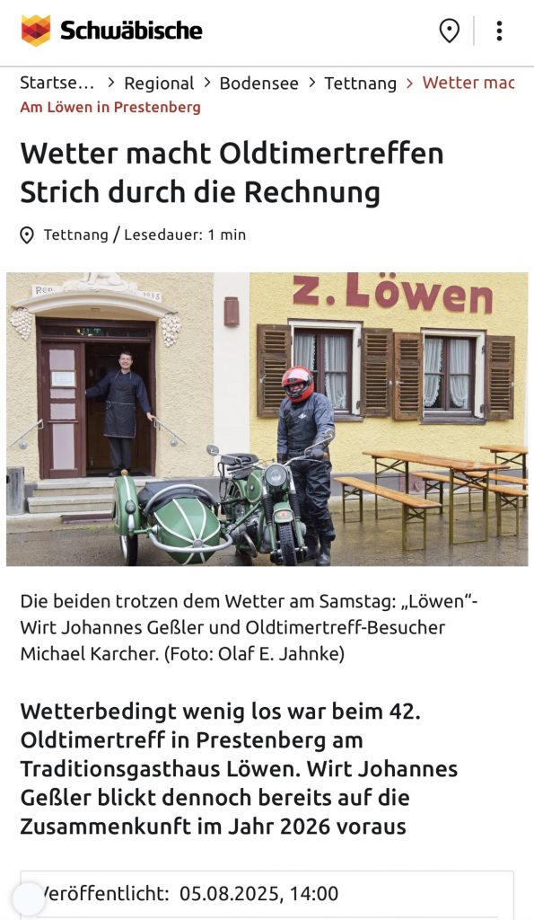 2025 ist das Oldtimertreffen am Samstag 2. August ins Wasser gefallen